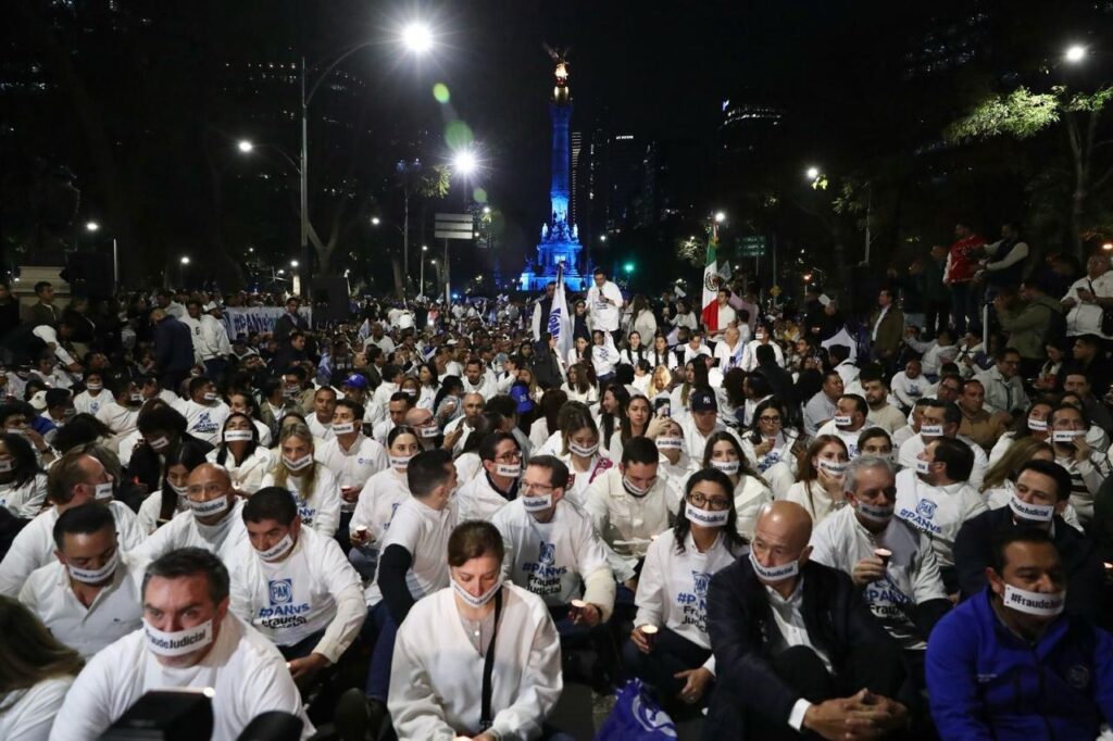 Con velas en las manos, más de 4 mil 500 ciudadanos se manifestaron anoche de manera pacífica al pie del Ángel de la Independencia, acompañando al Presidente Nacional del PAN, Jorge Romero Herrera, y de la magistrada Iliana Fabricia Contreras Perales, en un acto de protesta contra la fraudulenta reforma judicial con la que Morena busca apoderarse del Poder Judicial de la Federación y eliminar la separación de poderes en el país.