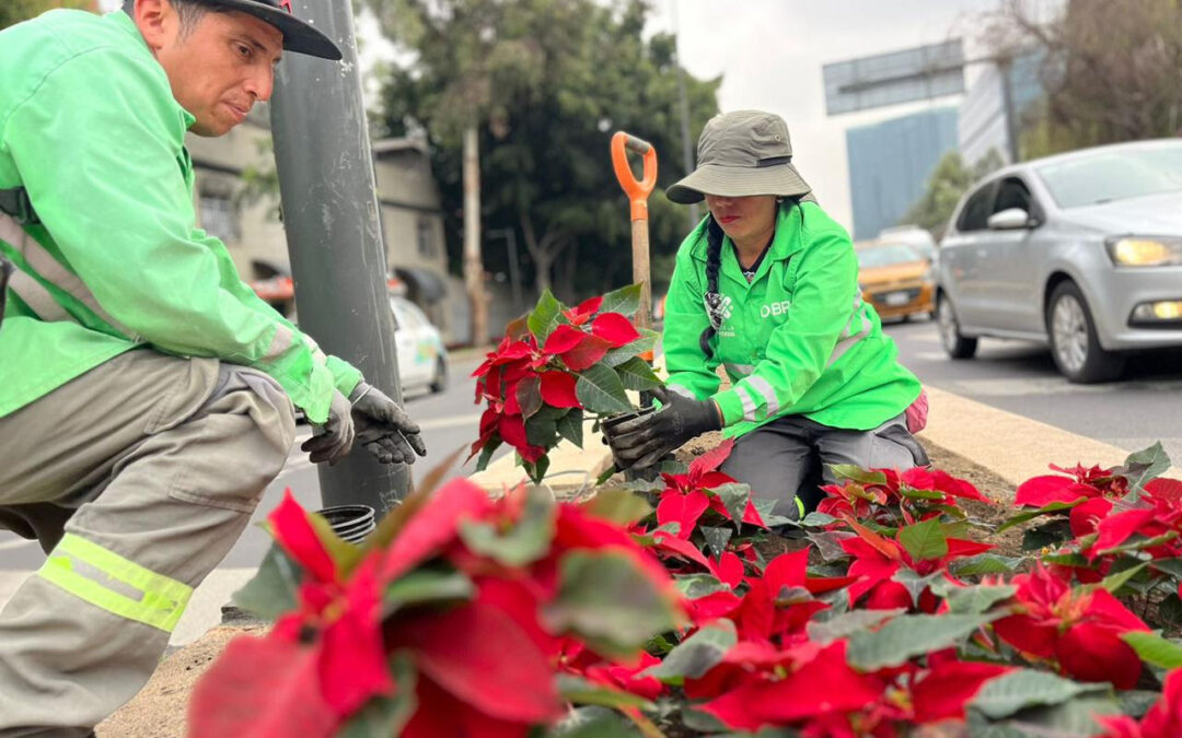 Previo al inicio de la temporada decembrina en la Ciudad de México, el Gobierno capitalino, a través de la Secretaría de Obras y Servicios (SOBSE), inició la plantación de 220 mil flores de nochebuena en camellones y áreas verdes de las principales avenidas de la capital, del 13 al 20 de noviembre, para disfrute de la población.