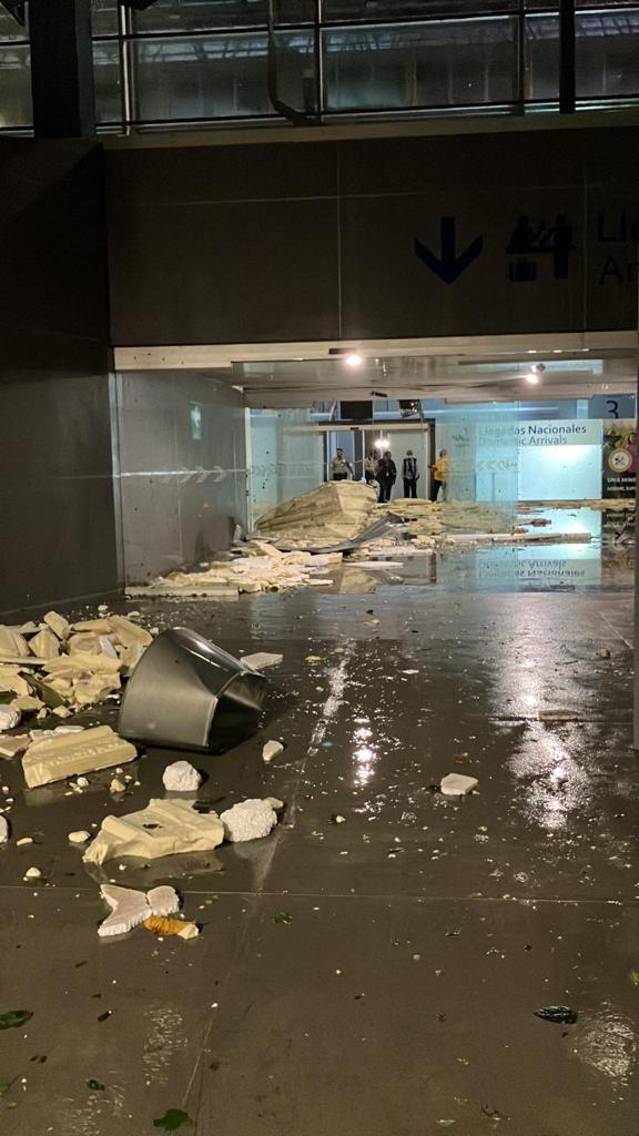 inspección con daños, pasillos telescópicos rotos, inundación del área