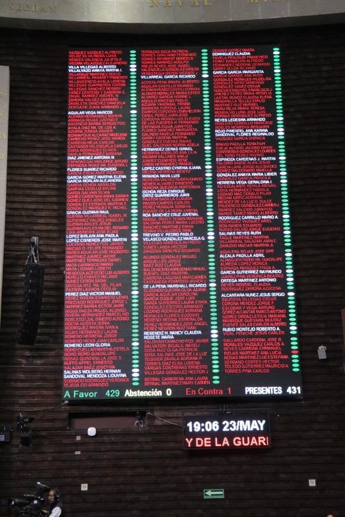 Para lo particular se aprobó con 427 votos a favor y 3 en contra, los artículos 8, 14, 86, 93 y Décimo Tercero Transitorio en términos del dictamen, que habían sido reservados por la diputada Ana Lucía Riojas Martínez (sin partido).