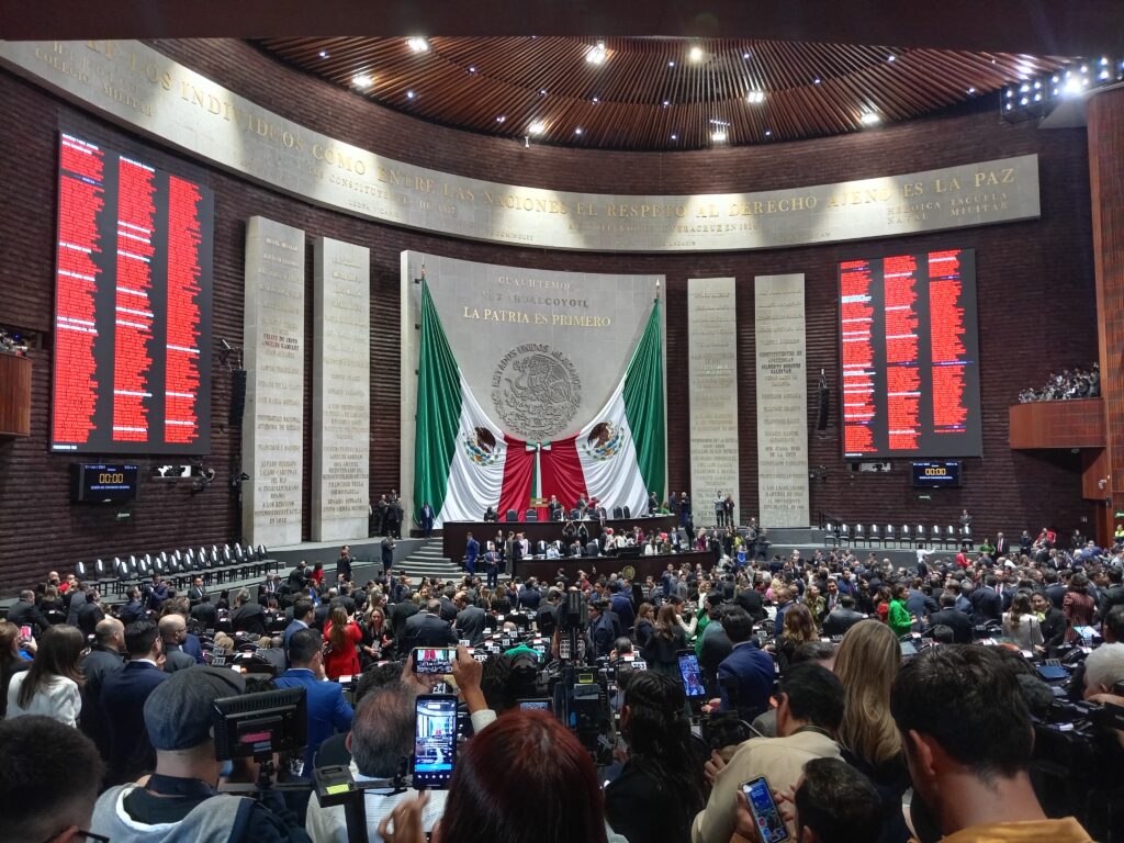En el salón de sesiones del Palacio Legislativo de San Lázaro, la sesión inicio alrededor de las 9:00 horas de este 1º de octubre, tras declararse el quórum legal con la presencia de 466 diputadas y diputados y 118 senadoras y senadores.