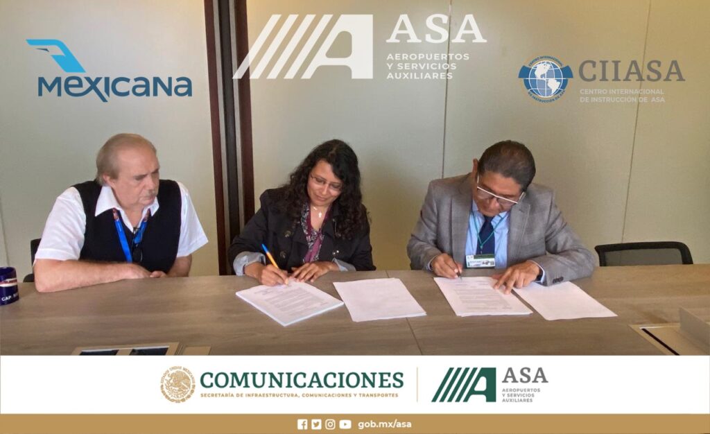 Aeropuertos y Servicios Auxiliares (ASA), a través de su Centro Internacional de Instrucción (CIIASA), firmó con la aerolínea del Estado Mexicano -Mexicana de Aviación- el contrato para la impartición de cursos en aula virtual y en las instalaciones de la aerolínea, en capacitación técnica especializada para su tripulación de pilotos.