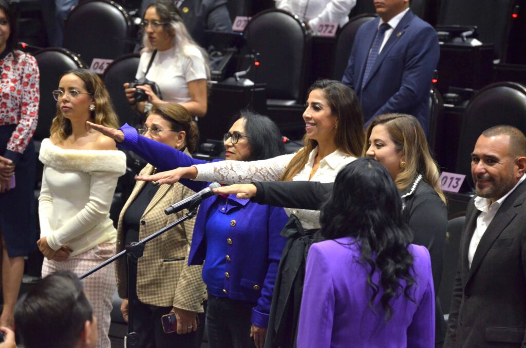 En la sesión vespertina de este martes, el presidente de la Mesa Directiva, Sergio Gutiérrez Luna, invitó a las y los presentes a ponerse de pie para la toma de protesta de las tres legisladoras, a quienes les dio la bienvenida.