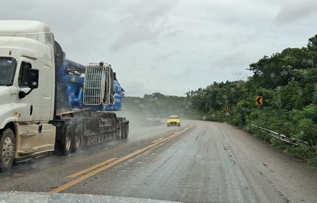 En el E.C. (Escárcega-Chetumal km 174+500)-Manuel Crescencio Rejón, en el subtramo El Tesoro, km 39+580, se reportó una lámina de agua sobre el camino.