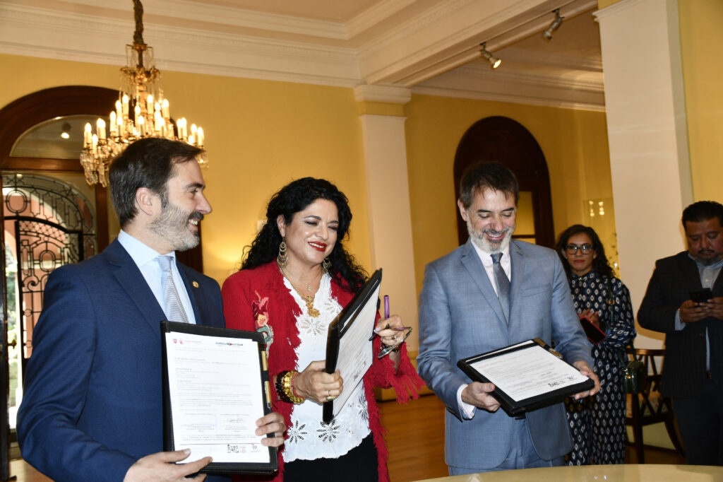 La secretaria de Turismo de la capital del país, Alejandra Frausto Guerrero; el embajador de España en México, Duarte Cuadrado, y el consejero de Turismo, Comercio y Turismo del País Vasco, Javier Hurtado, formalizaron la firma de un Memorándum de Entendimiento en materia turística, a fin de fomentar el intercambio de buenas prácticas, la cooperación entre los sectores público y privado y la promoción conjunta de los respectivos destinos.