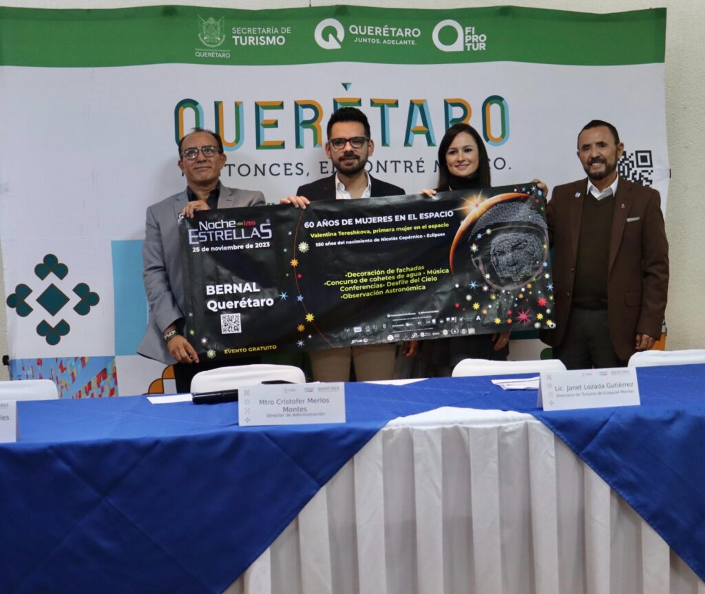 En conferencia de prensa, Cristofer Merlos Montes, Director de Administración de la Sectur Querétaro, en representación de la Secretaria Adriana Vega Vázquez Mellado, afirmó que Bernal es una de las 100 sedes de la Noche de las Estrellas, que recibirá a más de 3,000 visitantes con una ocupación hotelera estimada de 70 por ciento en sus 2,500 habitaciones. “Extendemos una cordial invitación para que la gente se sume a este gran evento, que convertirá a Bernal en epicentro del turismo científico en una noche mágica”, indicó.