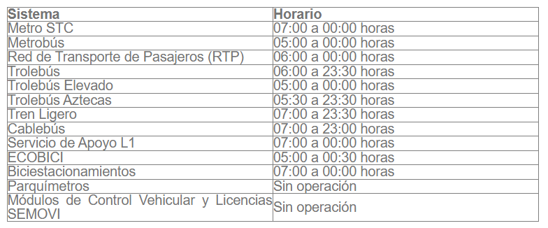| ECOBICI | 05:00 a 00:30 horas |