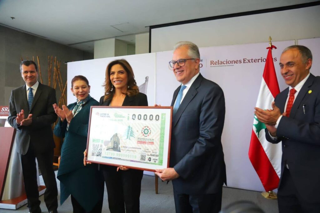 La Secretaría de Relaciones Exteriores (SRE) y Lotería Nacional develaron el billete del Sorteo Superior No. 2847, para celebrar el 80 Aniversario del establecimiento de relaciones diplomáticas entre México y la República Libanesa, que desde 1945 se han definido por la cooperación y el respeto binacional.