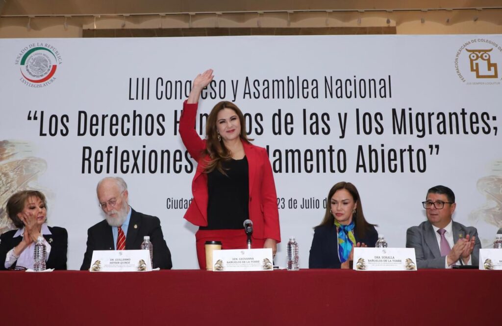 Al participar en el LIII Congreso y Asamblea Nacional de la Federación Mexicana de Colegios de Abogados, con el tema “Derechos Humanos de las y los Migrantes, Reflexiones de Parlamento Abierto, la vicecoordinadora del Grupo Parlamentario del Partido del Trabajo (GPPT) destacó que como legisladores están obligados a defender la soberanía de México ya los connacionales que radican en Estados Unidos.