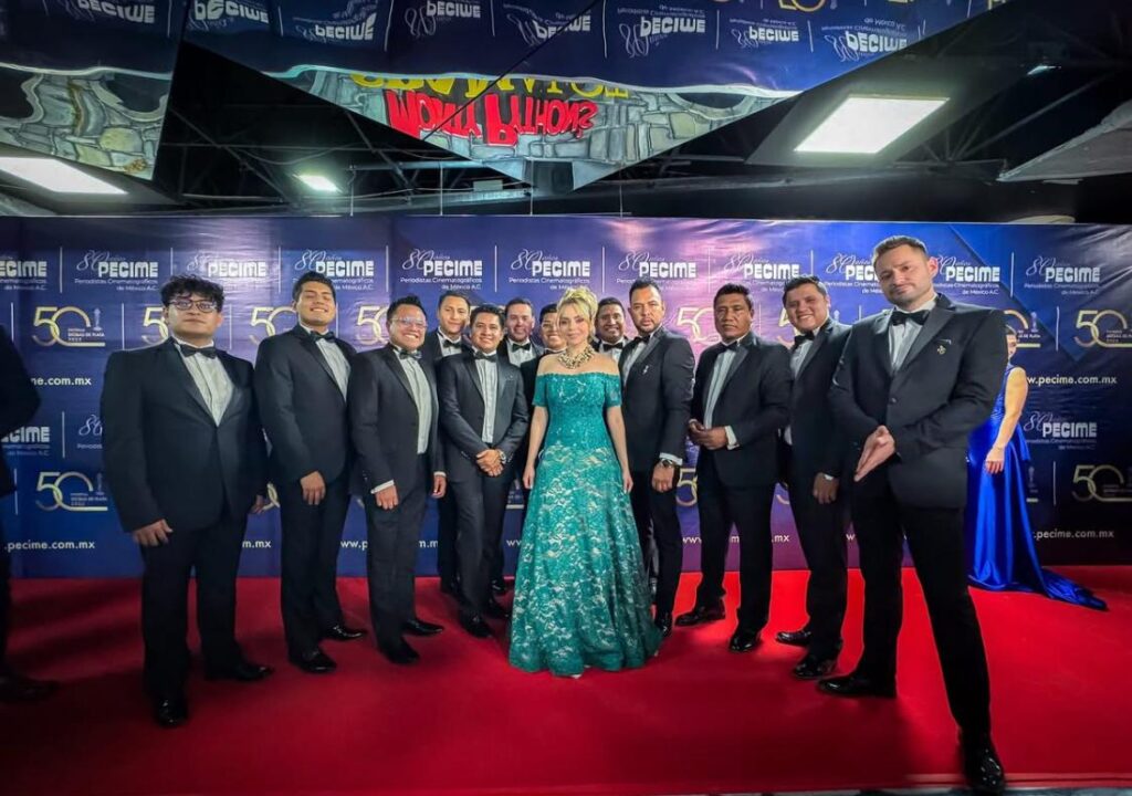 El homenaje a La Sonora Santanera por sus 70 años de historia musical culminó con la entrega de un reconocimiento especial de manos del presidente de PECIME, Alejandro Vázquez Cruz, galardón que fue recibido por la viuda del maestro Carlos Colorado, doña Yolanda Almazán, acompañada de su nieto Bernardo, así como del director general de la agrupación, Gilberto Navarrete, junto con los demás integrantes de la sonora.