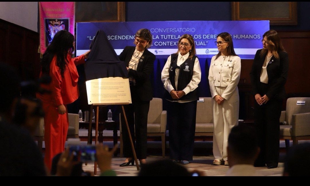 Al acto conmemorativo siguió el conversatorio «La trascendencia de la tutela de los derechos humanos en el contexto actual», con tres voces clave para tal misión en el estado de Guanajuato: la Mtra. Liz Alejandra Esparza Frausto, Secretaria de Derechos Humanos del Estado de Guanajuato; la Mtra. Karla Gabriela Alcaraz Olvera, Procuradora de los Derechos Humanos del Estado de Guanajuato; y la Mtra. María Teresa Palomino Ramos, Procuradora de Protección de Niñas, Niños y Adolescentes del Estado de Guanajuato.