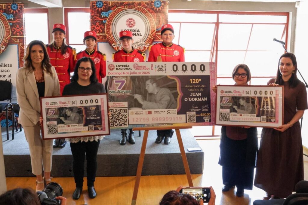 “Agradecemos infinitamente a todo el equipo que hizo posible un billete para celebrar, conmemorar y repensar al arquitecto Juan O’Gorman en su 120 aniversario de nacimiento, su cumpleaños es el 6 de julio, el día que es el sorteo… Juan O’Gorman y Frida Kalo cumplían años el mismo día. Entonces los festejamos a los dos”.