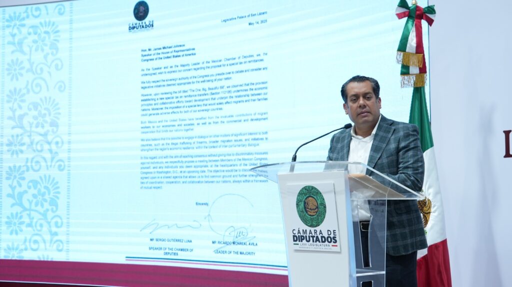 El presidente de la Cámara de Diputados, Sergio Gutiérrez Luna, informó que hoy se dirigió una carta a Michael Johnson, líder de la Cámara de Representantes en los Estados Unidos, firmada por él y el diputado Ricardo Monreal Ávila, líder de la mayoría, en donde manifiestan su inquietud sobre la iniciativa e intento legislativo para gravar con un 5 por ciento adicional las remesas que envían los paisanos y cualquier inmigrante que esté en Estados Unidos.