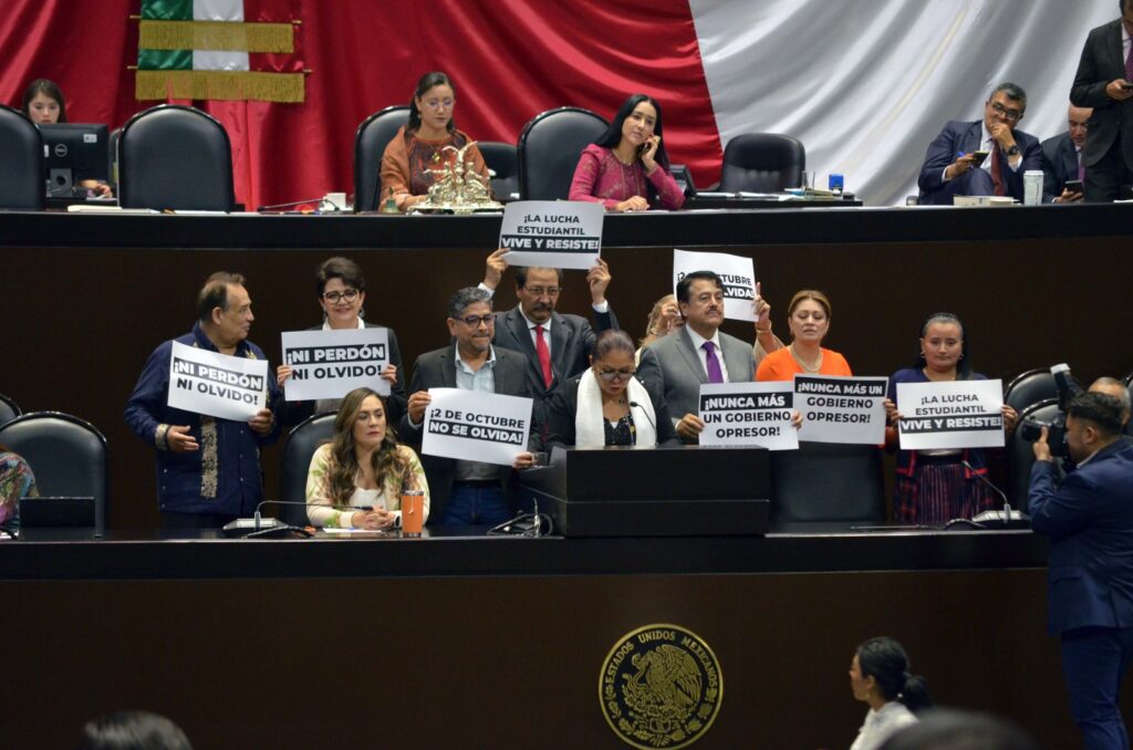En la sesión de este martes, diputadas y diputados de Morena, PAN, PRI, PVEM, PT, MC y PRD externaron sus comentarios desde la tribuna con motivo del aniversario de los caídos en la lucha por la democracia en la Plaza de las Tres Culturas en Tlatelolco, el 2 de octubre de 1968.
