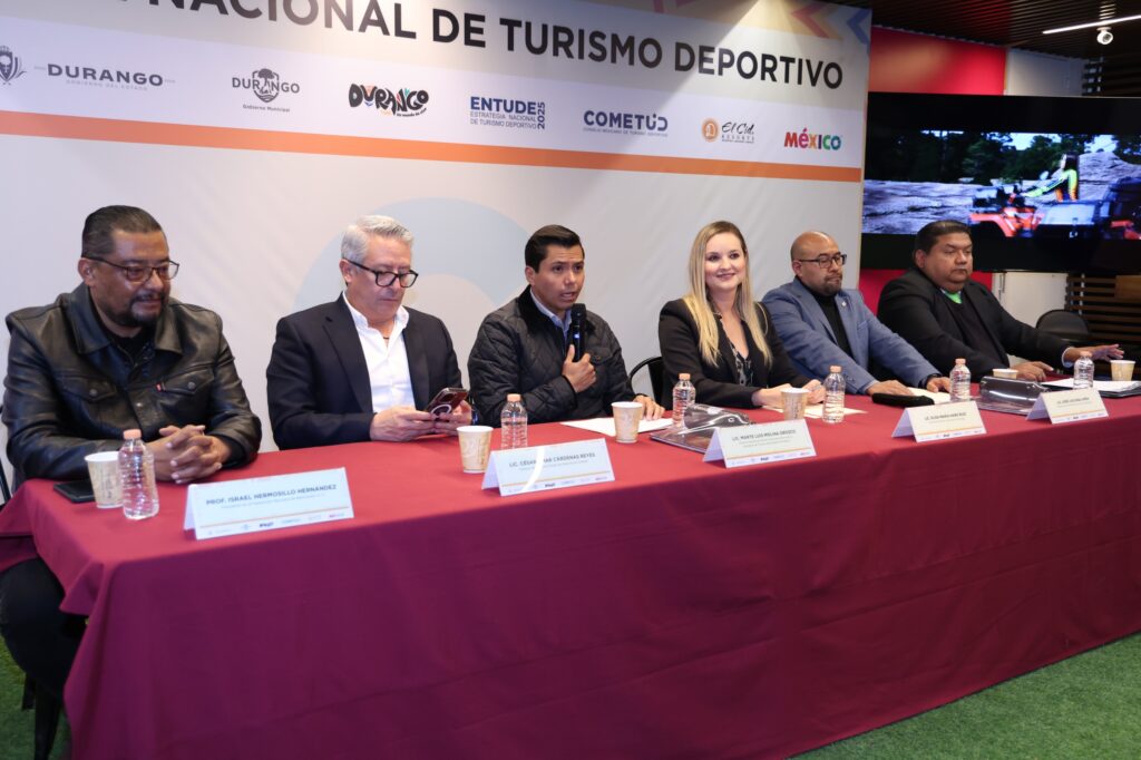 En representación de la secretaría de Turismo del Gobierno de México, Josefina Rodríguez Zamora, el director general de Gestión Social de Destinos, Marte Luis Molina Orozco, y la secretaria de Turismo de Durango, Elisa María Haro Ruiz, anunciaron la incorporación del estado a la Estrategia Nacional de Turismo Deportivo.