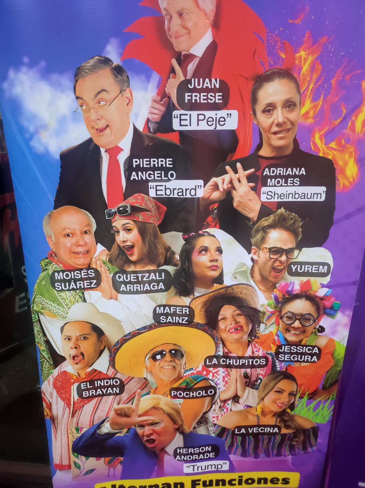 El buen humor y el ingenio mexicano, en un elenco de primera con reconocidos actores, comediantes, bellezas, son el ingrediente principal de esta puesta en escena donde un grupo de alegres e irreverentes pueblerinos tienen que vencer las tentaciones y maldades de los simpáticos villanos de esta historia: “EL PEJE” y su ayudante “MARCELO” y ahora la PRESIDENTA SHEINBAUM.