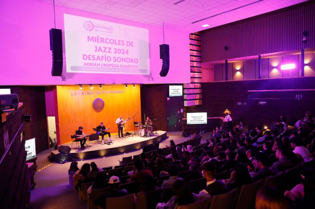 En el marco de los “Miércoles de Jazz 2024”, que organiza el Espacio Cultural San Lázaro, presidido por Ismael Carvallo Robledo, se llevó a cabo el concierto “Desafío Sonoro”, bajo la dirección del baterista y compositor Adrián Oropeza.