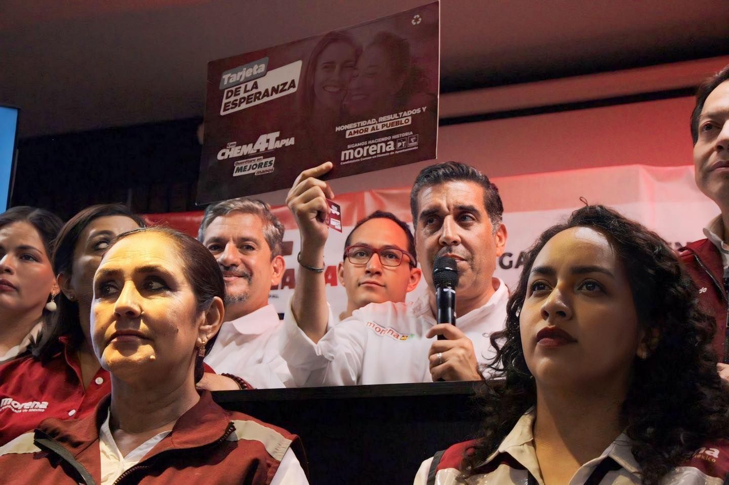 El candidato de Morena, Verde y PT a la alcaldía Chema Tapia presentó la Tarjeta de la Esperanza, programa social que busca apoyar a los más necesitados en el municipio.
