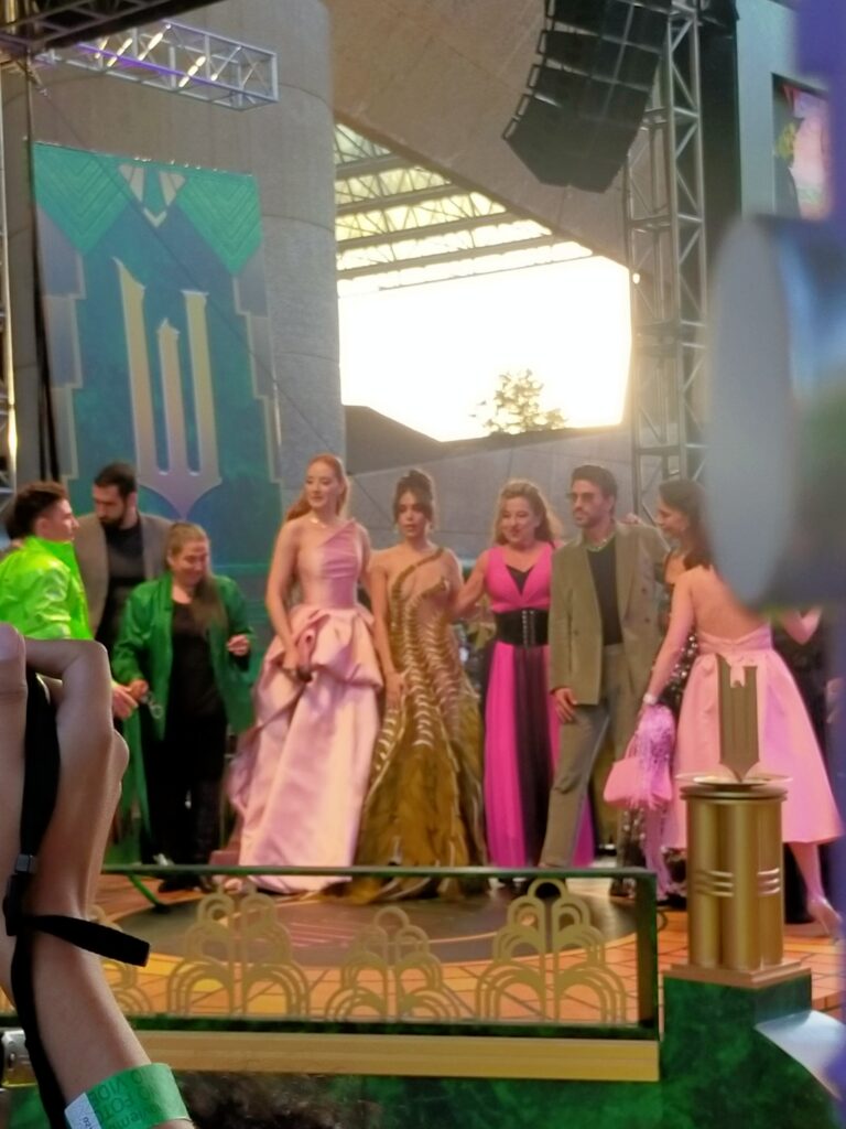 El Coloso de reforma se llenó de seguidores de la historia y de las estrellas, quienes no ocultaron su entusiasmo al ver a Ariana Grande en su papel de Glinda, la buena bruja. La cantante lució un vestido semitransparente con detalles verdes, mientras que Ceci de la Cueva optó por un look inspirado en su personaje, con un vestido rosa largo.