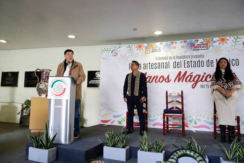 Al inaugurar la Feria Artesanal del Estado de México “Manos Mágicas”, que se expondrá en el Senado de la República hasta el próximo viernes, señaló que se exponen trabajos de cartonería, cerámica, gastronomía, joyería y textiles de artesanos mexiquenses de origen mazahua, otomí, tlahuica, nahua y matlazinca.