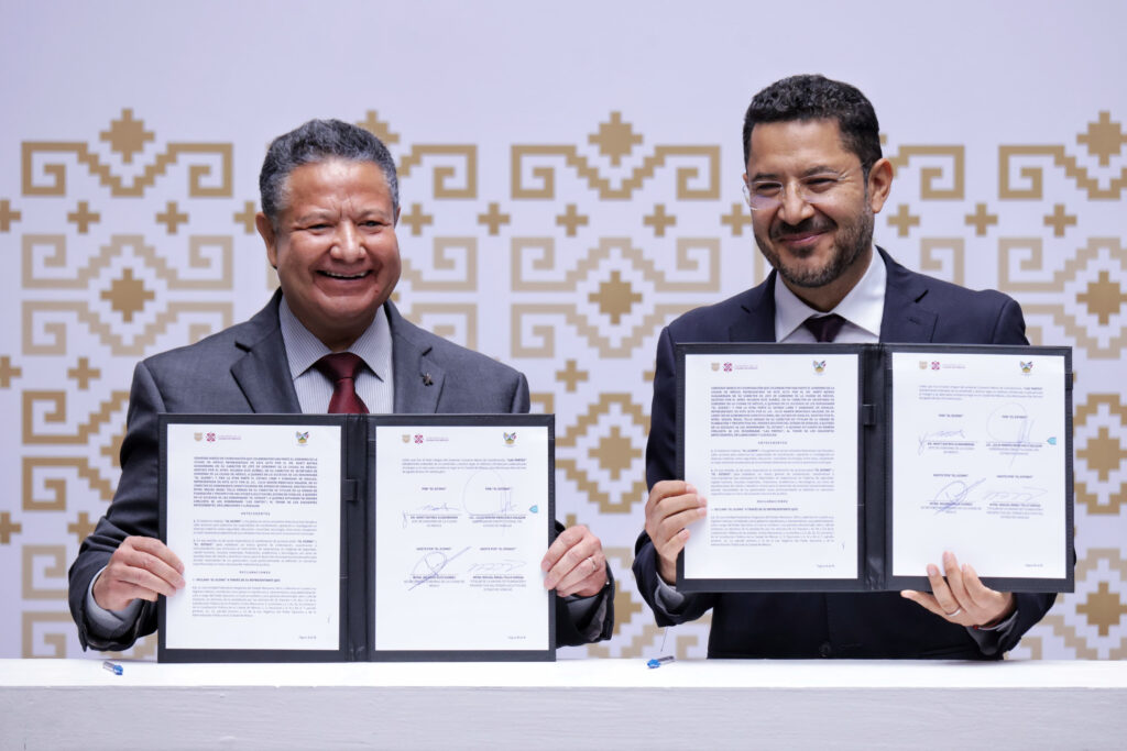 El Jefe de Gobierno, Martí Batres Guadarrama, y el gobernador del Estado de Hidalgo, Julio Ramón Menchaca Salazar, firmaron un Convenio Marco de Coordinación, el cual tiene como objetivo el intercambio de experiencias en materia de tecnología e innovación al servicio de la ciudadanía, así como en otras áreas de interés mutuo como buen gobierno, seguridad, cultura, desarrollo económico, ciudad sustentable, entre otras.