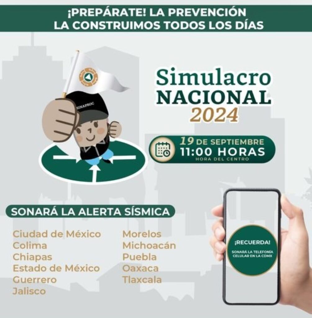 mexicanos a participar en el Simulacro Nacional 2024, que se llevará a cabo el jueves 19 de