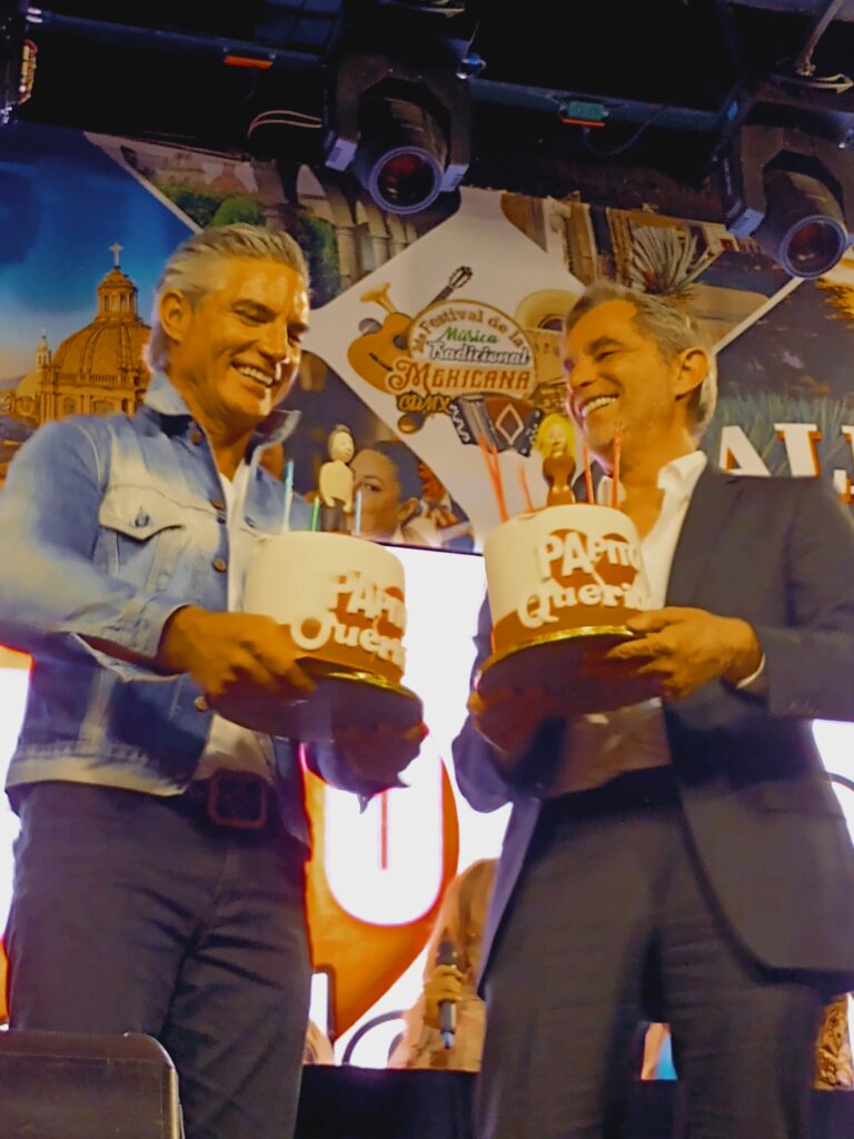 Durante el anuncio Humberto Zurita y Victor González fueron agasajos con sendos pasteles por sus cumpleaños.