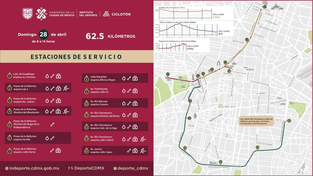 La actividad se llevará a cabo el próximo domingo 28 de abril, de 08:00 a 14:00 horas, en una ruta de 62.5 kilómetros, desde la Calzada de Guadalupe hasta Avenida Paseo de la Reforma