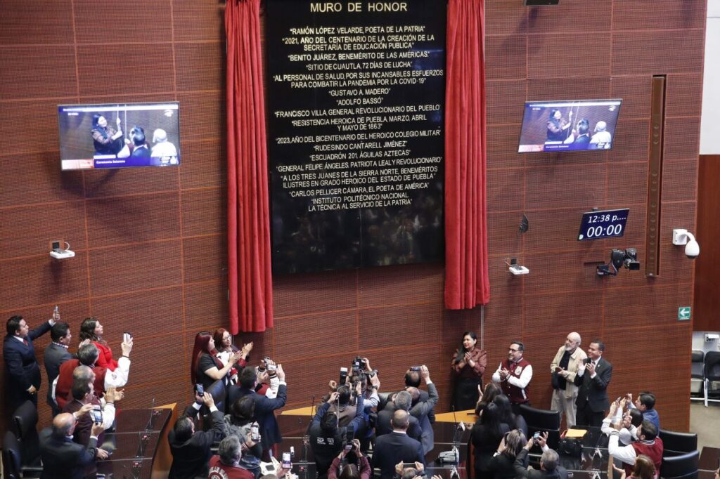 La presidenta de la Mesa Directiva, Ana Lilia Rivera Rivera, encabezó la ceremonia solemne para develar, en el Muro de Honor del Salón de Sesiones y con letras doradas, la inscripción de la leyenda: “Instituto Politécnico Nacional. La Técnica al Servicio de la Patria”.