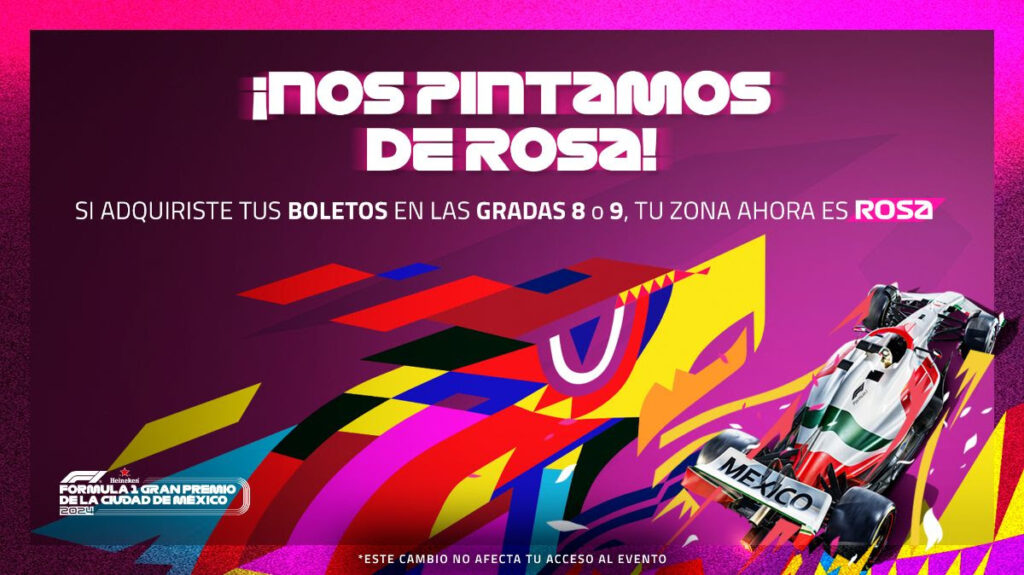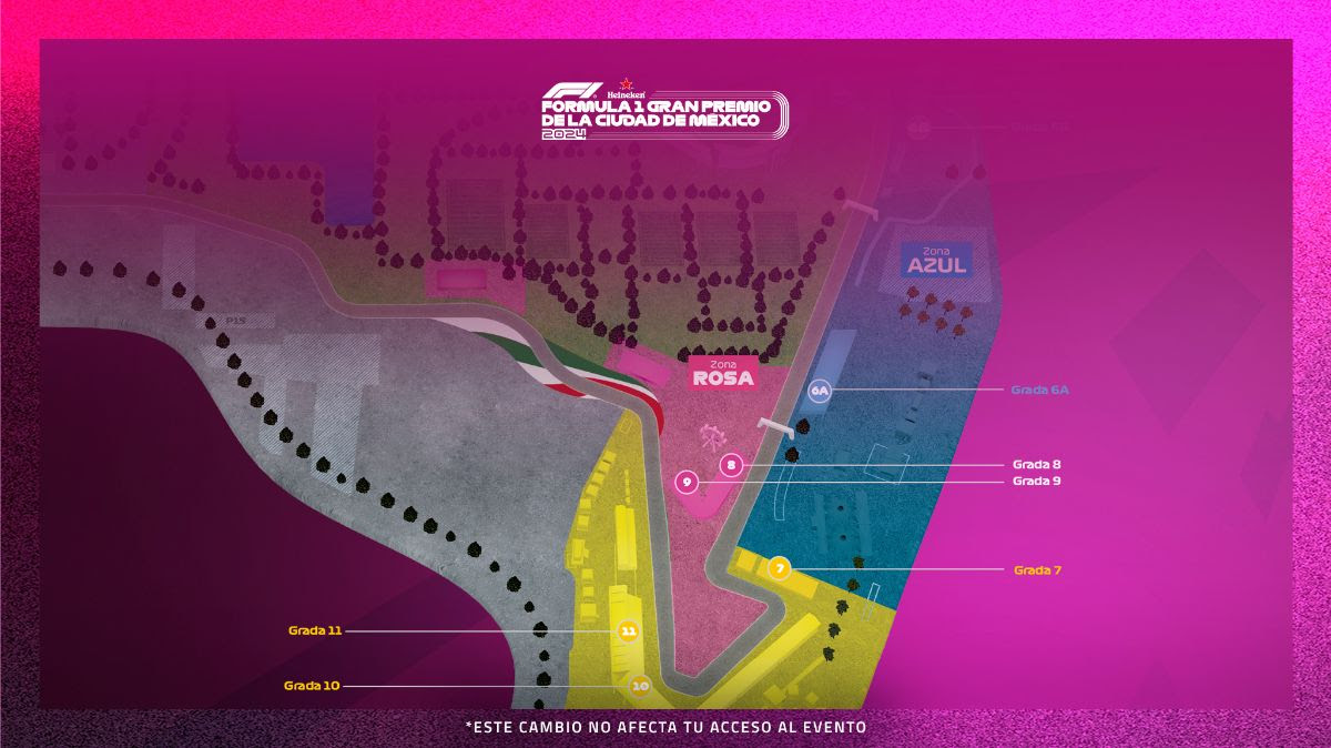 El FORMULA 1 GRAN PREMIO DE LA CIUDAD DE MÉXICO Presentado por Heineken anuncia que las gradas 8 y 9, ubicadas en el inicio del sector 2 del circuito, ahora formarán parte de la Zona Rosa. Este cambio no afectará el acceso de los aficionados que hayan adquirido boletos en estas gradas, que anteriormente pertenecían a la Zona Azul.