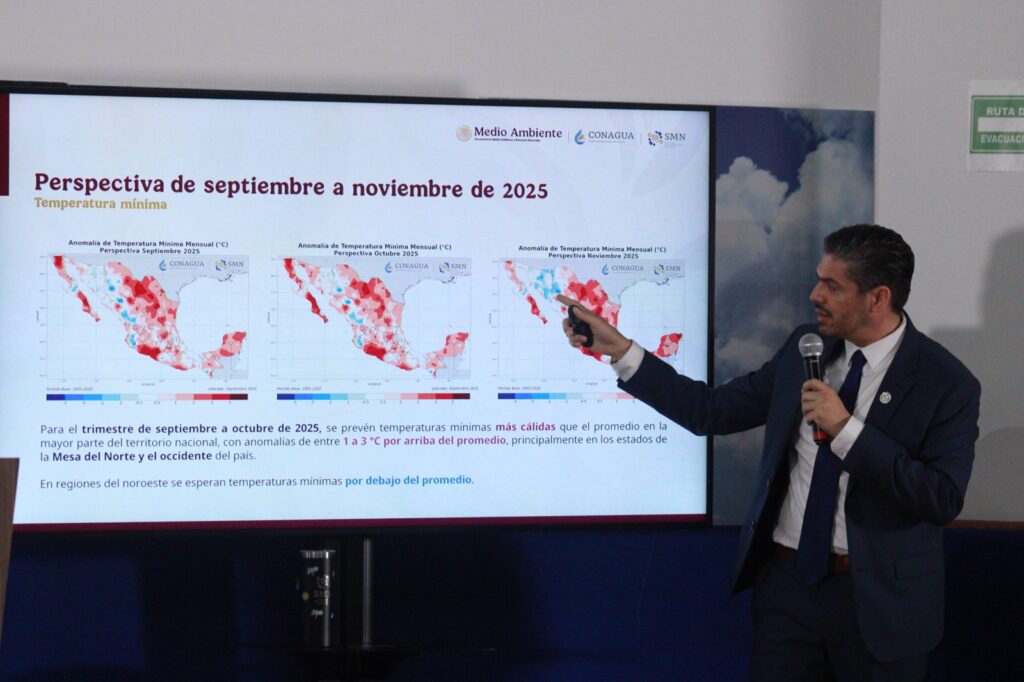 En cuanto a las temperaturas mínimas, el SMN puntualizó que, de septiembre a noviembre próximo, se prevén valores más cálidos que el promedio climatológico (1991-2020) en la mayor parte del país, con anomalía de 1 a 3 grados Celsius arriba del promedio, principalmente en la mesa del Norte y el occidente del país. En contraste, en las regiones de la Sierra Madre Occidental se esperan temperaturas mínimas por debajo del promedio.