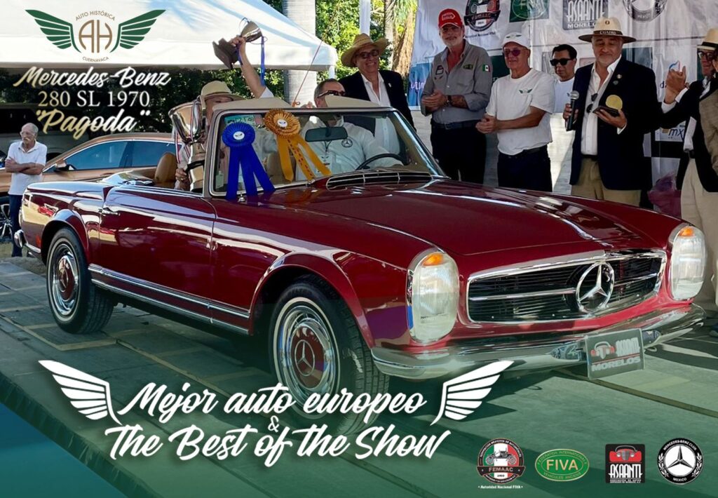 Y después de dos días de intensa calificación, los jueces seleccionaron a los ganadores del 1er concurso Auto Histórica Cuernavaca y los premiados fueron al Mejor Auto Americano: Ford Galaxie XL convertible 1965 y después al Mejor auto europeo y Best of the Show: Mercedes Benz 280 SL de 1970 “Pagoda”.