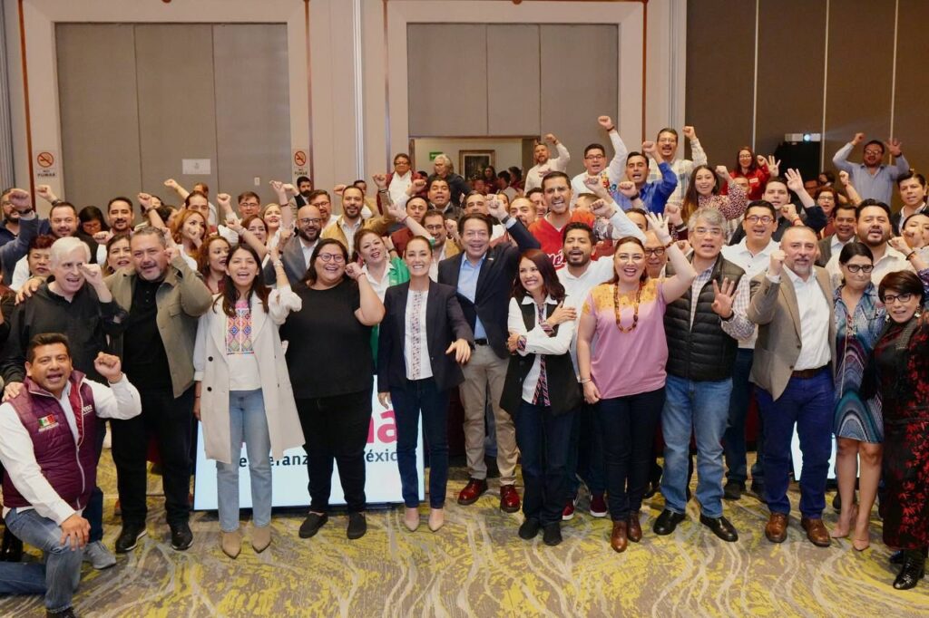 La Coordinadora de Defensa de la Transformación, Claudia Sheinbaum, y el presidente nacional de Morena, Mario Delgado, convocaron a las dirigencias estatales y delegados de Organización del partido para definir las tareas de defensa y promoción del voto rumbo a la elección de 2024.