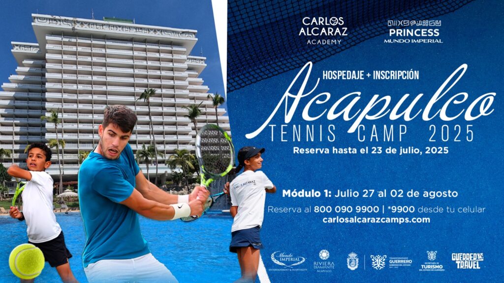 El campamento se realizará este verano en las instalaciones de lujo de Grupo Mundo Imperial, reconocidas por haber albergado a figuras del tenis mundial durante el Abierto Mexicano de Tenis. Este proyecto diseñado para jugadores de todas las edades y niveles, ofrece entrenamientos técnicos, físicos y mentales, guiados por los entrenadores oficiales de la academia de Carlos Alcaraz, quienes viajarán desde España para compartir la misma metodología que ha llevado al tenista español a la élite mundial.