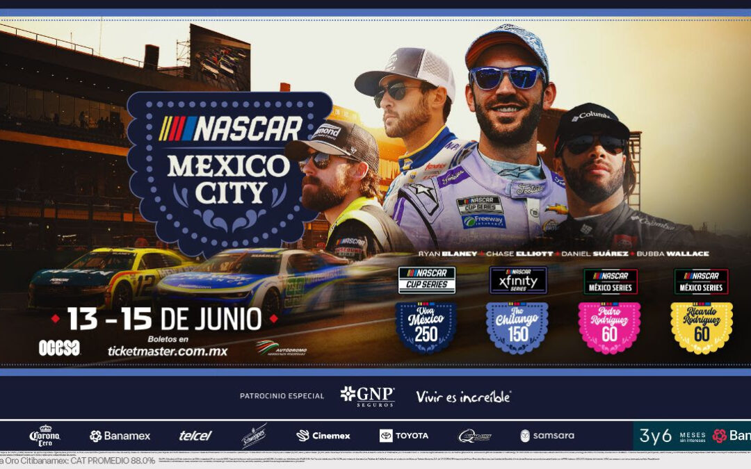 El NASCAR Mexico City Weekend recibirá por primera vez una carrera puntuable fuera de Estados Unidos de la máxima categoría de stock cars y a los mejores pilotos y equipos de NASCAR a nivel nacional e internacional que atraerán a miles de aficionados de todo el mundo, convirtiéndose en un evento imperdible para los amantes del automovilismo y una oportunidad única para mostrar lo mejor de la hospitalidad y riqueza cultural de México. Los interesados pueden asegurar su lugar en la primera edición de este histórico evento en vivo adquiriendo sus entradas a través de la plataforma Ticketmaster.
