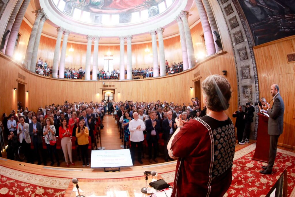Ante un auditorio repleto de estudiantes y académicos de la Universidad de Guadalajara, Beatriz Paredes se refirió a la importancia de fortalecer la educación superior pública, requiriendo una educación de calidad que permita que se gradúen más estudiantes universitarios con los conocimientos necesarios para enfrentar al mercado laboral en condiciones de competencia.