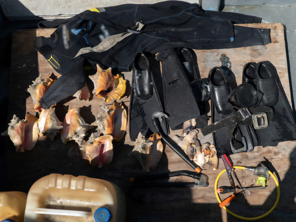 Durante el operativo, realizado el 4 de marzo, se detectó una embarcación furtiva, a la que se le dio alcance; se logró la detención de tres buzos. Al inspeccionarla, se encontraron artes de pesca prohibidas, tales como trajes para buceo, aletas, snorkel, visores, ganchos y utensilios para perforación, desarmadores y compresora; además de 9 conchas de caracol rosado y 7 piezas de carne de caracol fresco, crudo eviscerado.