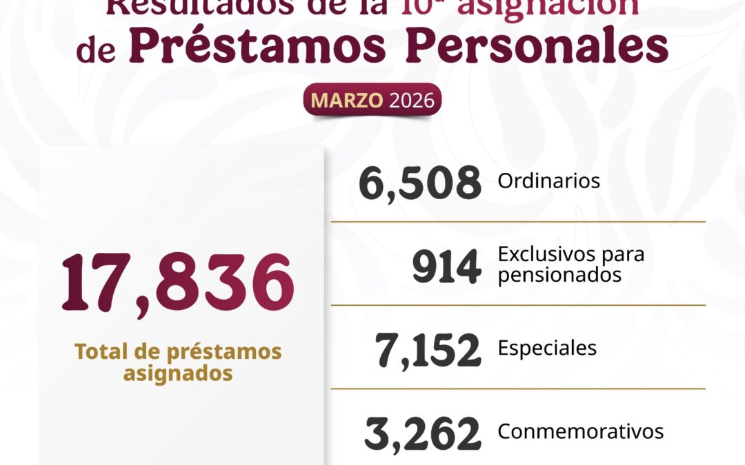 El Instituto de Seguridad y Servicios Sociales de los Trabajadores del Estado (ISSSTE), encabezado por el director general Martí Batres Guadarrama, informa que fueron asignados 17 mil 836 créditos como parte de la décima entrega del Programa Anual de Préstamos Personales 2026, dirigida a las y los derechohabientes que cumplieron con los requisitos establecidos.