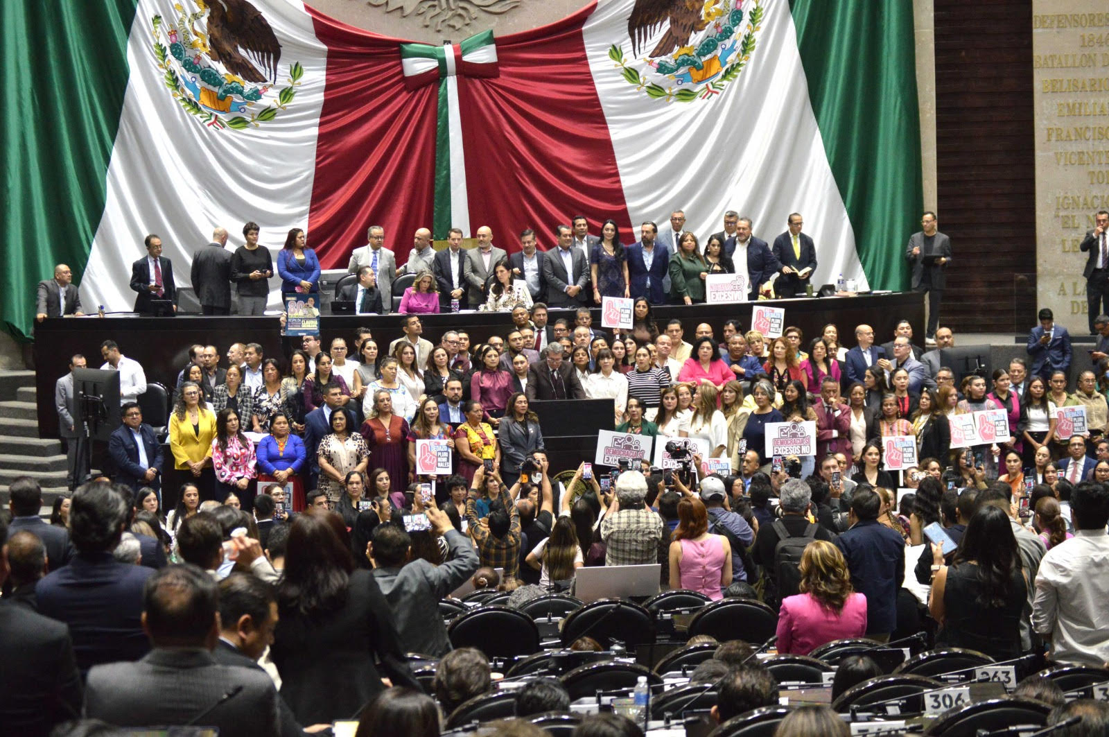 El PAn, PRI y MC sumaron los votos en contra para dejar el marcador 259 a favor y 234 en contra, una abstenciòn. Morena necesitaba los dos tercios de los 500 diputados, 334, cifra que necesariamente requerìael apoyo de sus alidos.