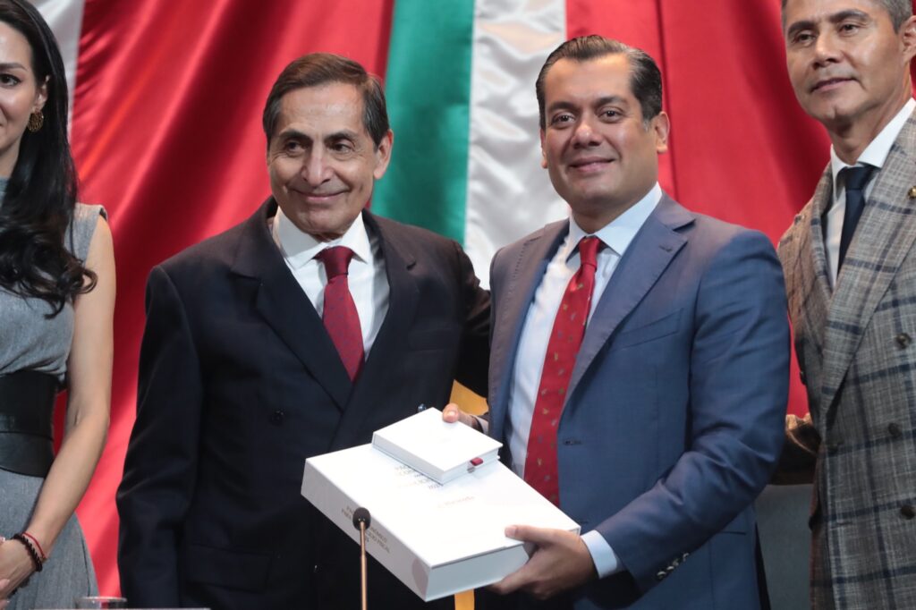 Al recibir el Paquete Económico para 2025 de manos del secretario de Hacienda y Crédito Público, Rogelio Ramírez de la O, en el Palacio Legislativo de San Lázaro, el presidente de la Mesa Directiva de la Cámara de Diputados, Sergio Gutiérrez Luna, destacó que el Proyecto de Presupuesto de Egresos de la Federación y de Ley de Ingresos para 2025 tienen un enfoque “claramente social y con los fundamentos para la construcción del Segundo Piso de la gran transformación política y social que está viviendo el país”.