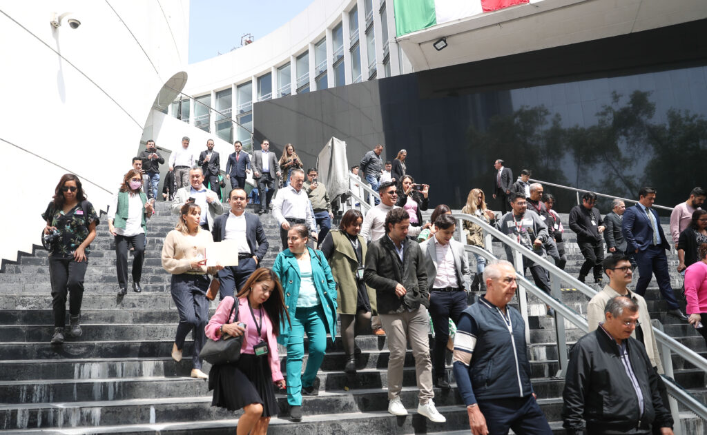 Con la colaboración de personal de Protección Civil de la Cámara, legisladores, trabajadores y visitantes ubicaron las rutas de evacuación, se dirigieron a las zonas de seguridad y a los puntos de reunión externos, entre ellos, el Jardín “Luis Pasteur”, del Paseo de la Reforma y el cruce con Avenida de los Insurgentes.