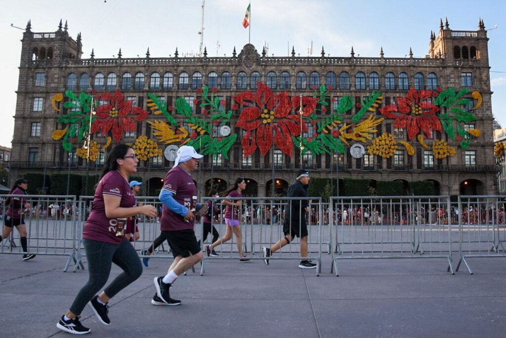 Las actividades de calentamiento para las y los asistentes comenzaron a las 06:40 horas, mientras que el protocolo se realizó minutos después para dar arranque a las 07:00 horas, todo esto en el Zócalo.
