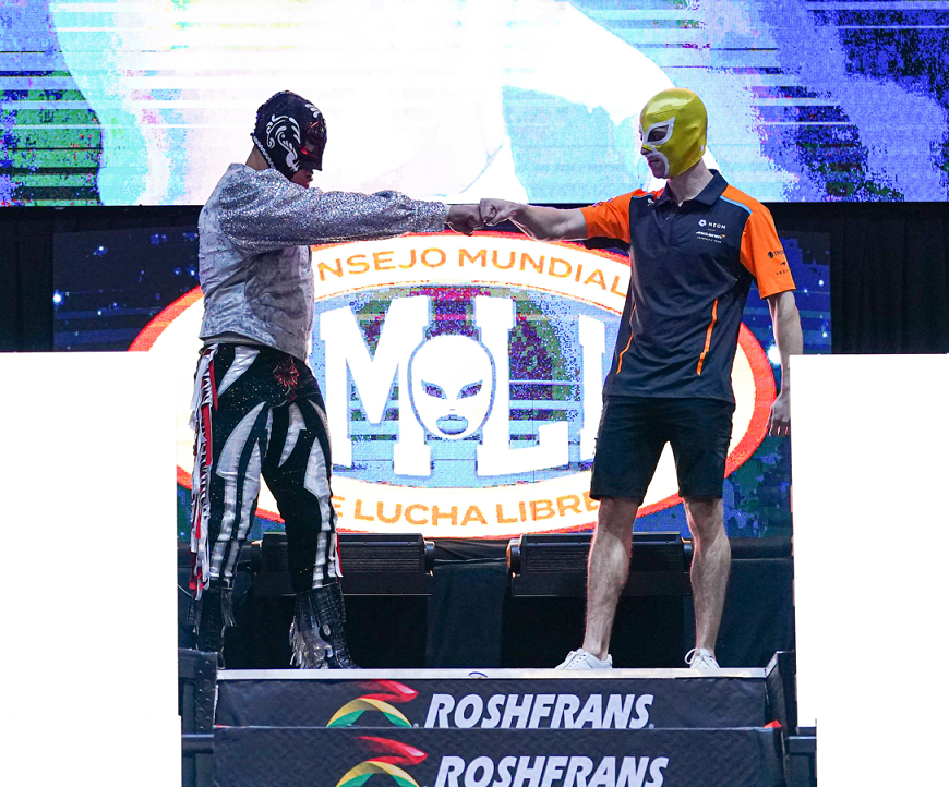 «Fue muy divertido ir a la Arena México para experimentar la lucha libre y aprender sobre esta tradición que es tan fuerte aquí en México. Era la primera vez que veía la lucha libre en persona, me impresionó mucho y siento un gran respeto por todos los que organizan estos eventos y participan en ellos. Espero poder ver un evento en vivo muy pronto. Estoy muy agradecido con todo el equipo de la Arena México por recibirnos y ya estoy deseando volver.» – Jake Hughes, Equipo NEOM McLaren Formula E.