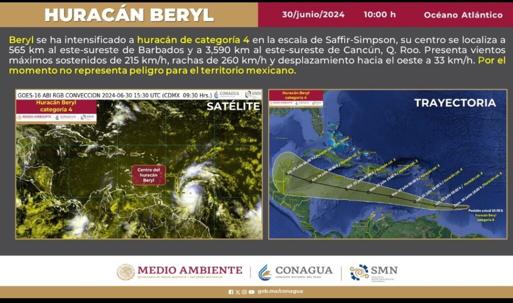 seguimiento al huracán Beryl y sus posibles afectaciones en el estado.