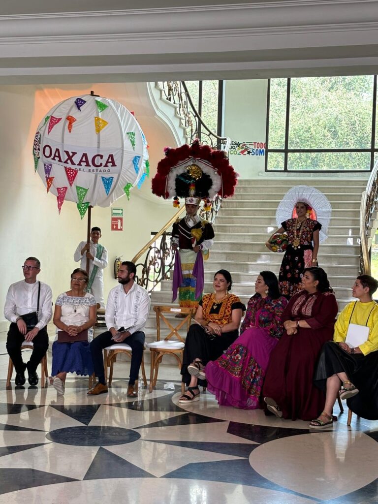Presentaron las actividades la secretaria de Turismo, Saymi Pineda Velasco; la titular de la Secretaría de Interculturalidad, Pueblos y Comunidades Indígenas y Afromexicanas, Bertha Ruth Arreola Ruiz, el secretario de las Culturas y Artes, Víctor Vásquez Castillejos, la coordinadora de Comunicación Social del Gobierno de Oaxaca, Elizabeth Álvarez Acosta y el subsecretario de Fomento Económico y Atracción a la Inversión de la Secretaría de Desarrollo Económico Iñigo Arturo Aragón García.