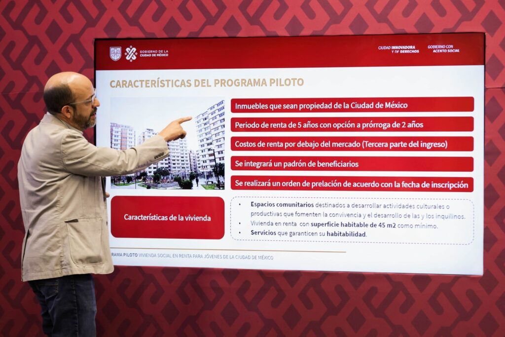 El Jefe de Gobierno, Martí Batres Guadarrama, presentó el Programa Piloto “Vivienda Social en Renta para Jóvenes de la Ciudad de México 2024”, que tiene como objetivo ofrecer vivienda en renta asequible a jóvenes de entre 18 y 29 años que habitan en la capital del país, desempeñan actividades laborales o académicas, no cuentan con una vivienda propia y quienes podrán habitarla en un periodo de cinco años, con posible extensión a siete.
