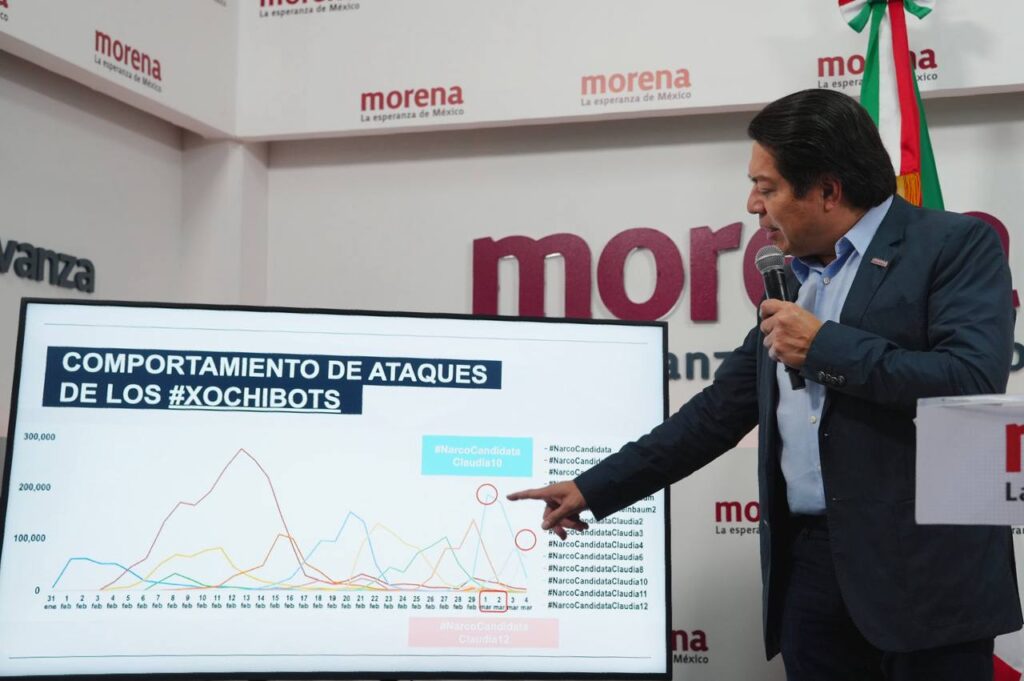 El presidente nacional de Morena, Mario Delgado, anunció que desde el partido buscarán a los directivos de la red X (antes Twitter) para mostrarles pruebas del uso de bots y de la inteligencia artificial por parte de la derecha la cual, dijo, pretende ensuciar el proceso electoral. “Hemos decidido buscar a la directiva de X para mostrarles las distintas pruebas que hemos exhibido cada semana sobre el uso de bots”.