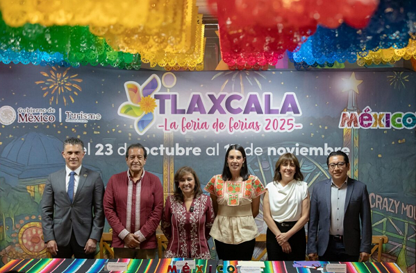 La secretaría de Turismo del Gobierno de México, Josefina Rodríguez Zamora, y la gobernadora de Tlaxcala, Lorena Cuéllar Cisneros, presentaron la cartelera oficial de Tlaxcala, la Feria de Ferias 2025 , que se llevará a cabo del jueves 23 de octubre al lunes 17 de noviembre de 2025.