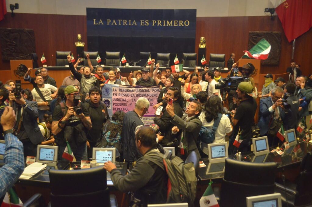 “Por lo anterior, se informa que, con la finalidad de garantizar el desarrollo libre y seguro de las sesiones ordinarias en este recinto legislativo, se suspende el acceso a ciudadanos y ciudadanas que no laboren en esta Cámara de Senadores o fungen como enlaces legislativos”, precisó.