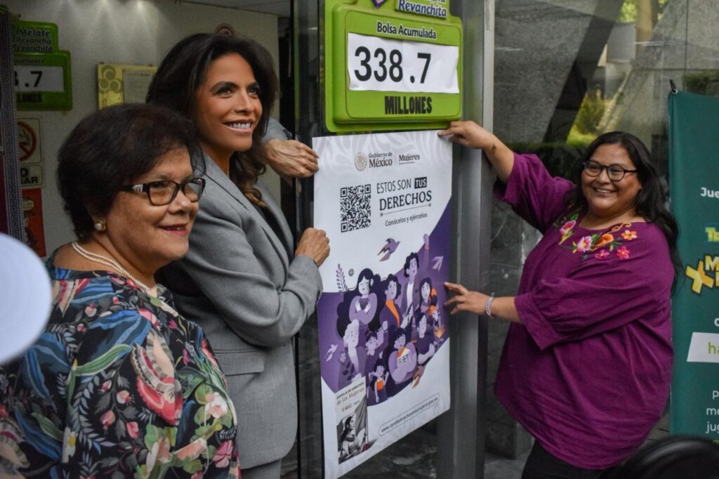 La Secretaría de las Mujeres y la Lotería Nacional firmaron un Convenio Marco de Colaboración para la Promoción y Difusión de los Derechos de las Mujeres, que tiene como objetivo la difusión de la Cartilla de Derechos de las Mujeres a través de un código QR que aparecerá en todos los “cachitos” de lotería que se emitirán a partir del próximo mes, por lo que cada billete se convertirá un canal de igualdad.